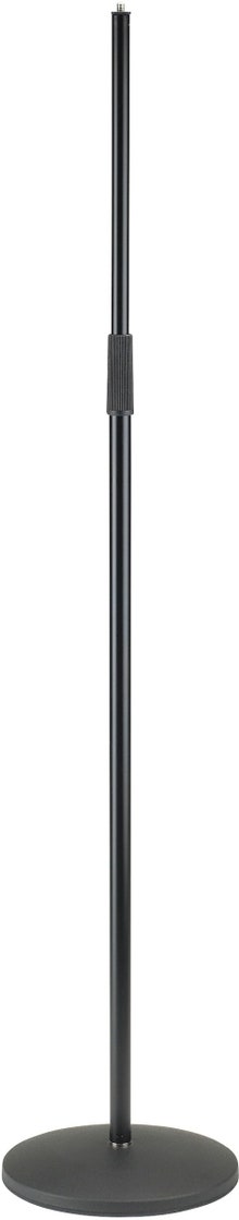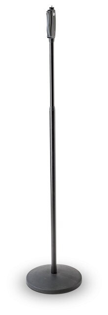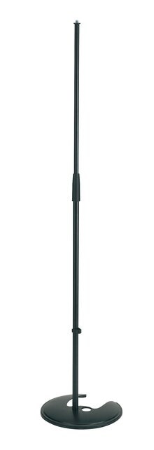 To-delt mikrofonstativ med ekstra lang underdel i slankt design med stor rund fod.