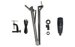 The Pod Pack 1 is a professional upgrade to any announce studio. The kit consists of a high-quality condenser microphone paired with a fully-adjustable suspension boom arm, keeping the desk clear and the microphone always in position for podcasting, on-air or voice-over applications.