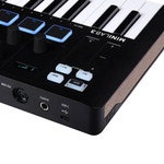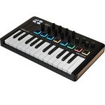 Artikelnummer 2402371USB/MIDI-keyboard med 25 anslagsfølsomme tangenter, 8 pads, kontrolknapper, DAW-integration og stor softwarepakke. Sort