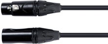 Sort kabel med hun/han-XLR i metal og aflastning i gummi. 15 m.