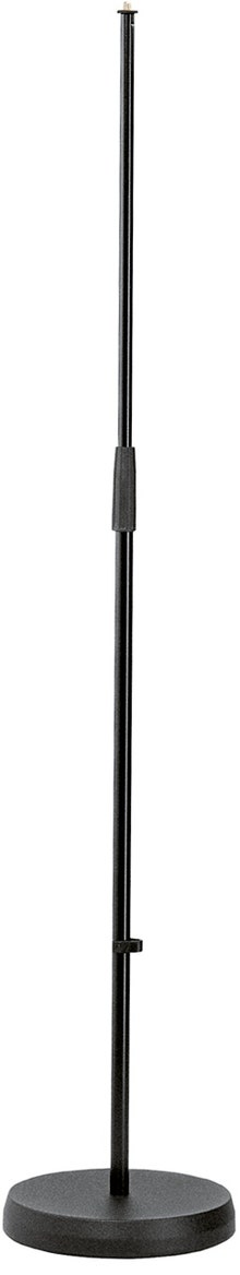 Lavt mikrofonstativ med 2-delt bom og korte, kraftige ben. Sort.