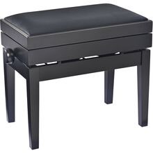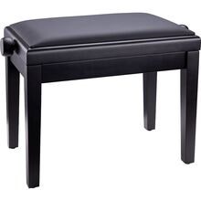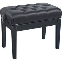 Højdejusterbar pianobænk i massivt træ med opbevaring, sort mat finish og sort kunstlædersæde