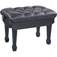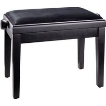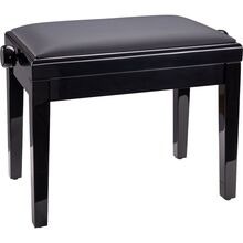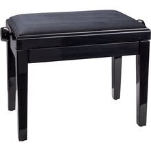 Højdejusterbar pianobænk i massivt træ, sort højglans finish med kunstlædersæde