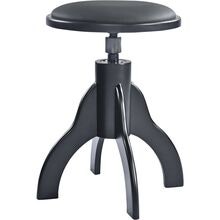 Højdejusterbar pianoskammel i massivt træ, rund sæde i sort kunstlæder