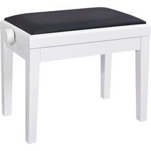 Højdejusterbar pianobænk i massivt træ, hvid mat finish med sort kunstlædersæde