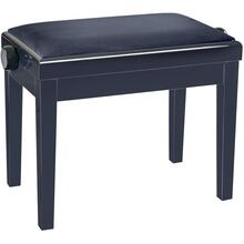 Højdejusterbar pianobænk i massivt træ, sort højglans finish med veloursæde