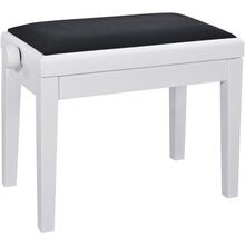 Højdejusterbar pianobænk i massivt træ, hvid højglans finish med sort veloursæde